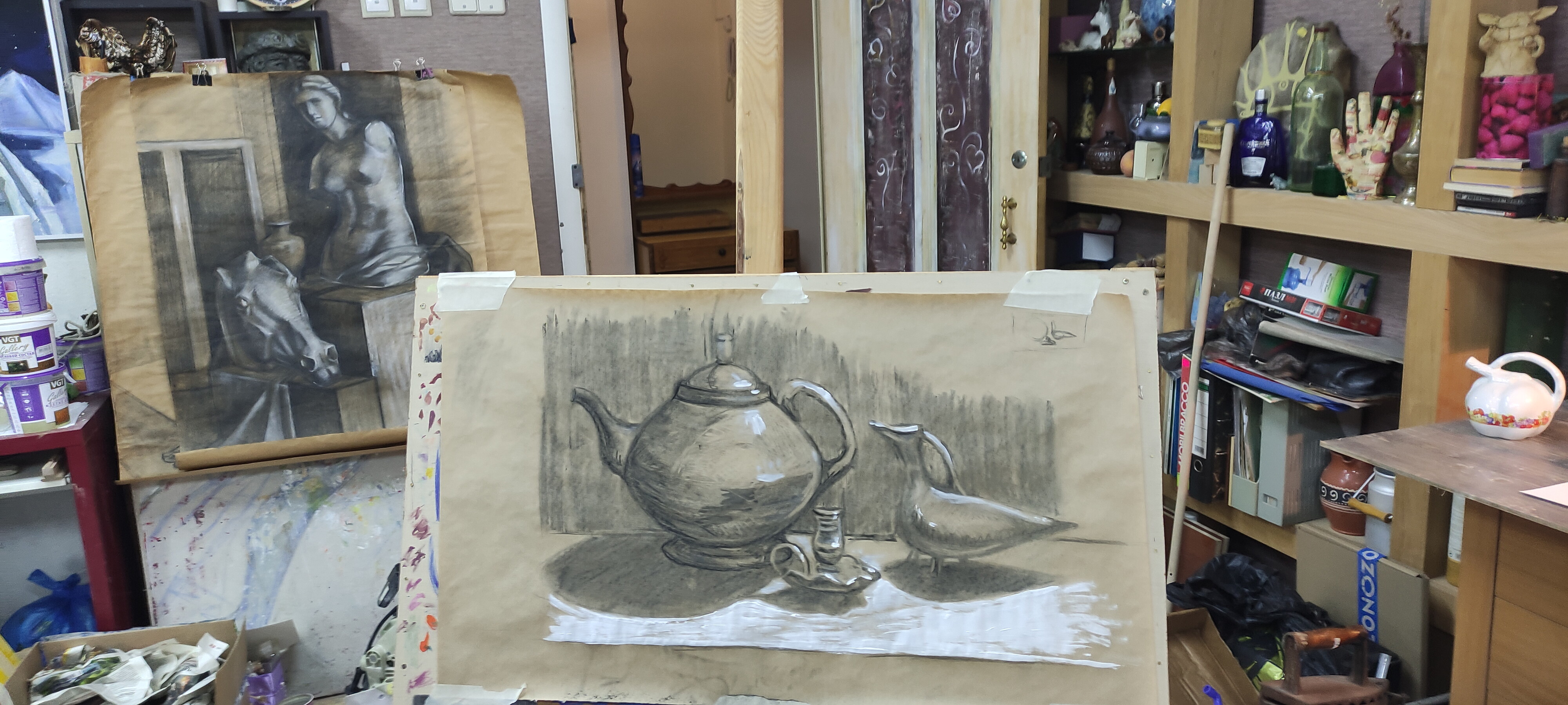 Мне удобно, мы соседи со студией. Мне нравится все: и керамика, и живопись.